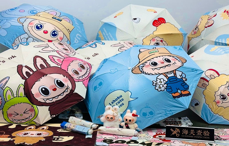 图为:合肥海关所属庐州海关在寄递渠道查获侵权LABUBU产品44件